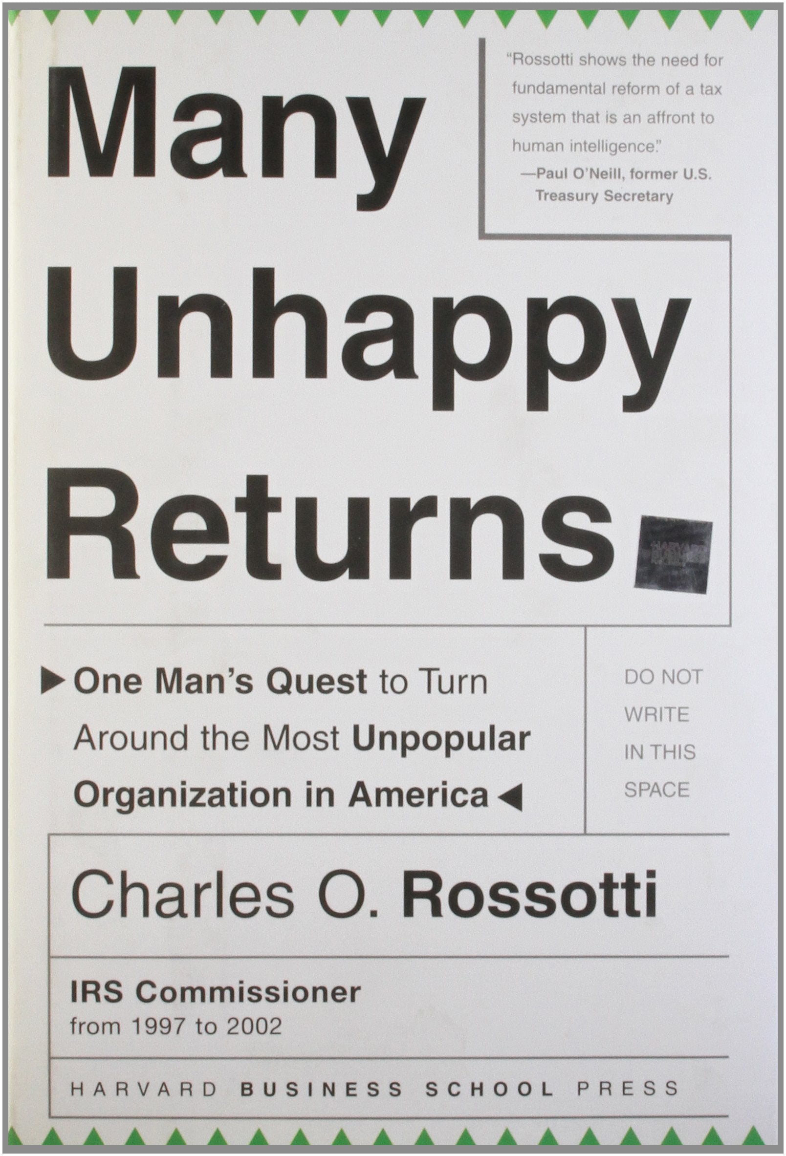 Many Unhappy Returns: One Man's Quest To Turn Around The Most Unpopular Organization In America (Leadership for the Common Good)